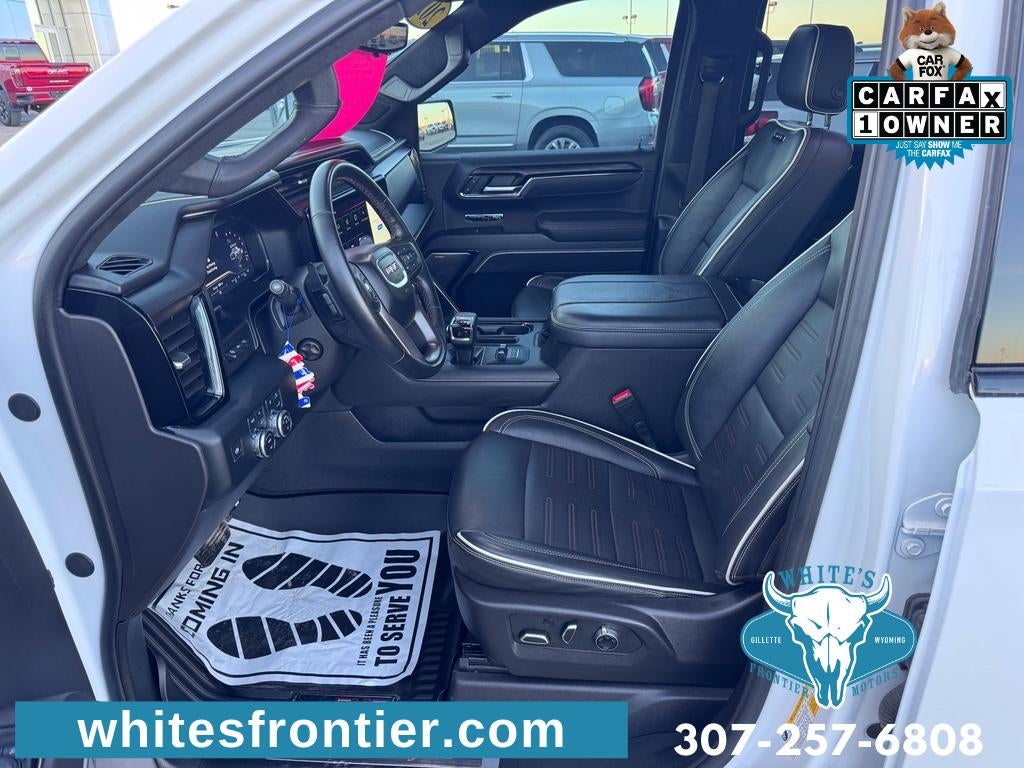 Preferred Equipment Group 4SG: Trailer Side Blind Zone Alert; Power Sliding Rear Window with Rear Defogger; Ultrasonic Front and Rear Park Assist; Trailer Camera Provisions; Electric Rear-Window Defogger; Theft Deterrent System (unauthorized Entry); Gloss Black Header with Dark Nickel Grille Insert Bars; Front Rain-Sensing Wipers; Heavy-Duty Air Filter; Skid Plates; 120-Volt Interior Power Outlet; Heated Driver and Front Outboard Passenger Seating; Wireless Charging; Front Premium Floor Liners with Removable Carpet Insert; Color-Keyed Carpeting Floor Covering; OnStar and GMC Connected Services Capable; Driver-Selectable Full-Locking Front Differential; Heated 2nd Row Outboard Seats; Off-Road Suspension; Power Front Passenger Windows with Express Up/down; Driver-Selectable Full-Locking Rear Differential; Power Rear Windows with Express Down; Integrated Trailer Brake Controller; HD Surround Vision; Ventilated Driver and Front Passenger Seats; Power Rake and Telescoping Steering Column; Power Sunroof; Multicolor 15" Diagonal Head-Up Display; Keyless Open and Start; Bose Premium Series with 12- Speaker System; Perimeter Lighting; Push Button Start; LED Cargo Area Lighting; Remote Vehicle Starter System; In-Vehicle Trailering System App; Hill Descent Control; Floor-Mounted Center Console; MultiPro Tailgate Audio System by Kicker; Bed View Camera; Rear Cross Traffic Braking; Trailer Tire Pressure Monitor System; GMC Pro Safety; Trailering Package; 2 USB Ports; 2 Charge/data USB Ports Inside Center Console; Steering Wheel Audio Controls; 2 type-C Charge-Only Rear USB Ports; GMC Connected Access Capable; Universal Home Remote; 2-Speed Transfer Case; Deep-Tinted Glass; Spray-On Pickup Bedliner with AT4X Logo; SiriusXM with 360L; Hitch View; Power Front Windows with Driver Express Up/down; Rear Pedestrian Detection; Wi-Fi Hotspot Capable; Rear Wheelhouse Liners; Power Door Locks. Off-Road High Clearance Step. Wired Auxiliary Trailer Camera. Dual Active Exhaust. Rear Underseat Storage. **Equipment listed is based on original vehicle build and subject to change. Please confirm the accuracy of the included equipment by calling the dealer prior to purchase.**